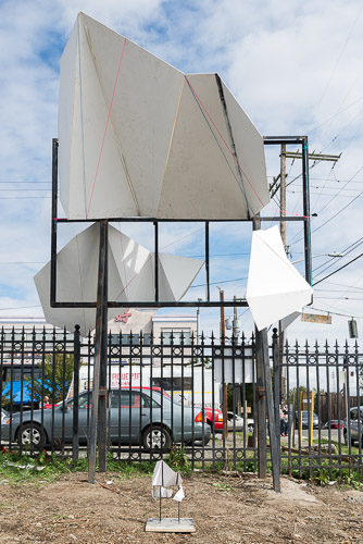 Site specific installation for NEPO House's 3rd annual art walk between the International District and Beacon Hill in Seattle. Hardboard, acrylic, nylon rope, wire, gaffer's tape mounted on an existing steel billboard, 15 x 8 x 8 feet.